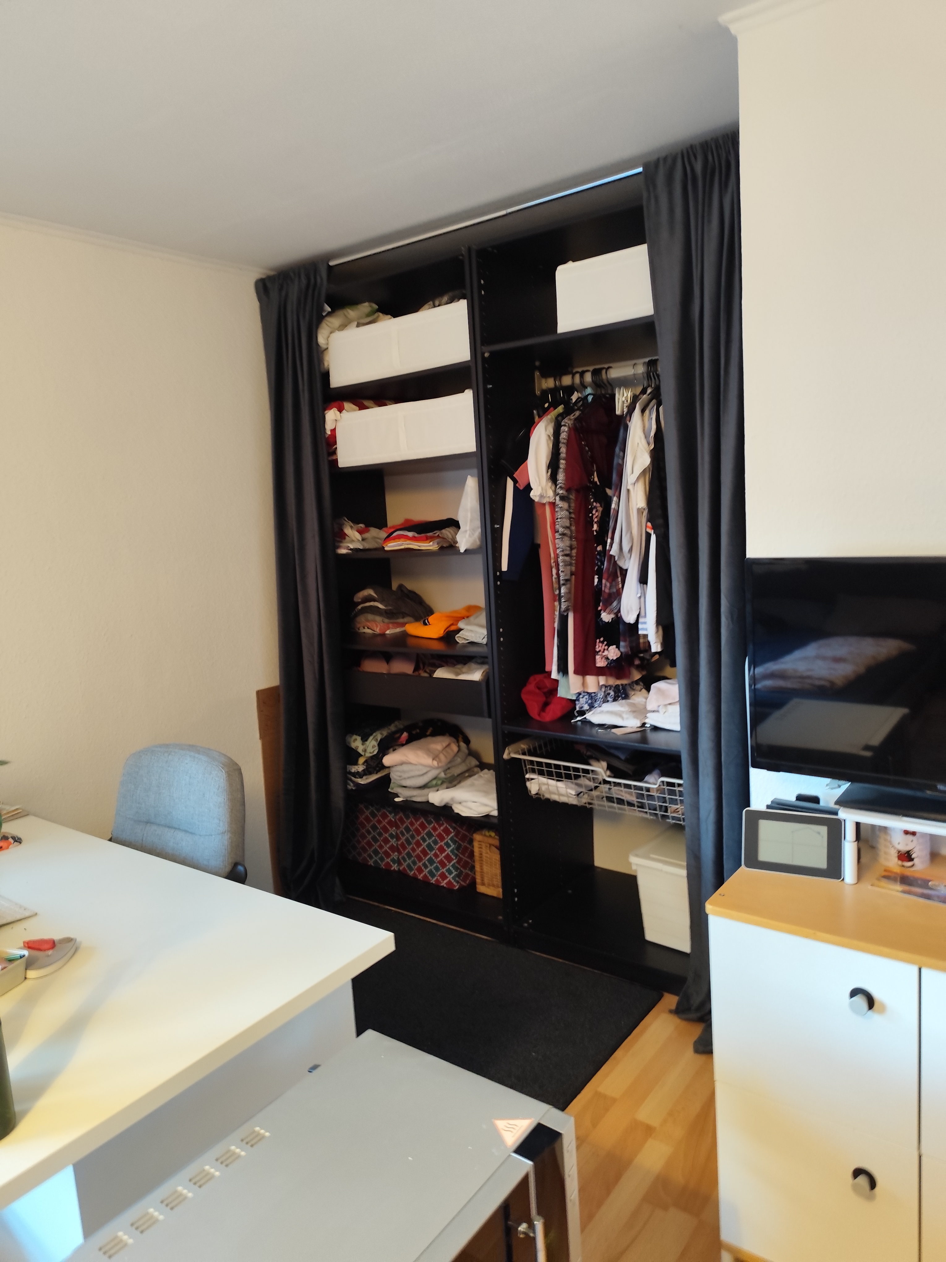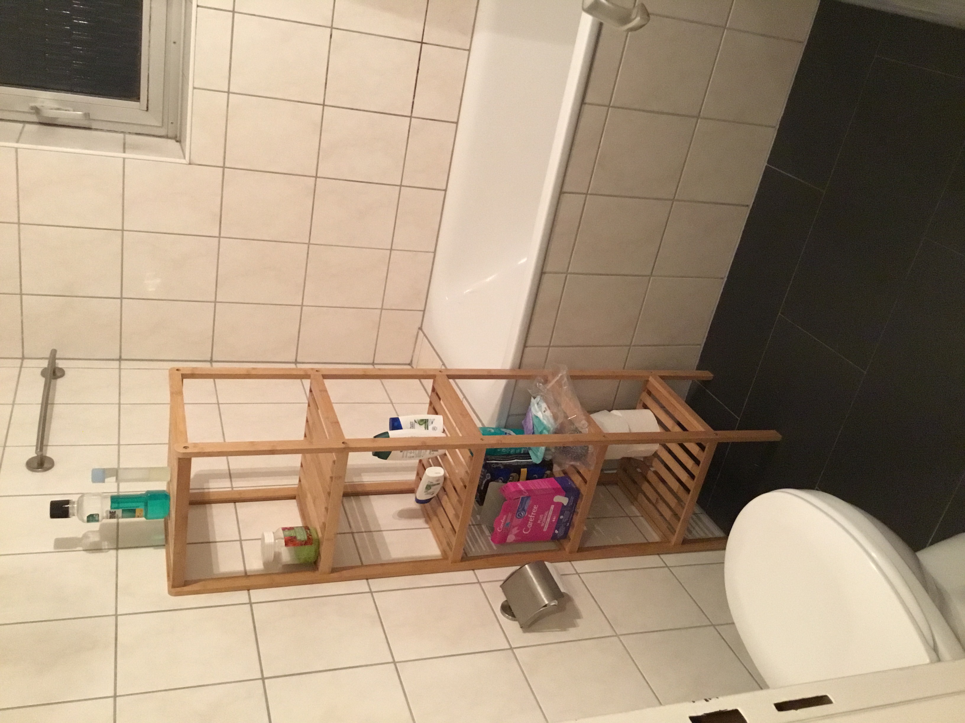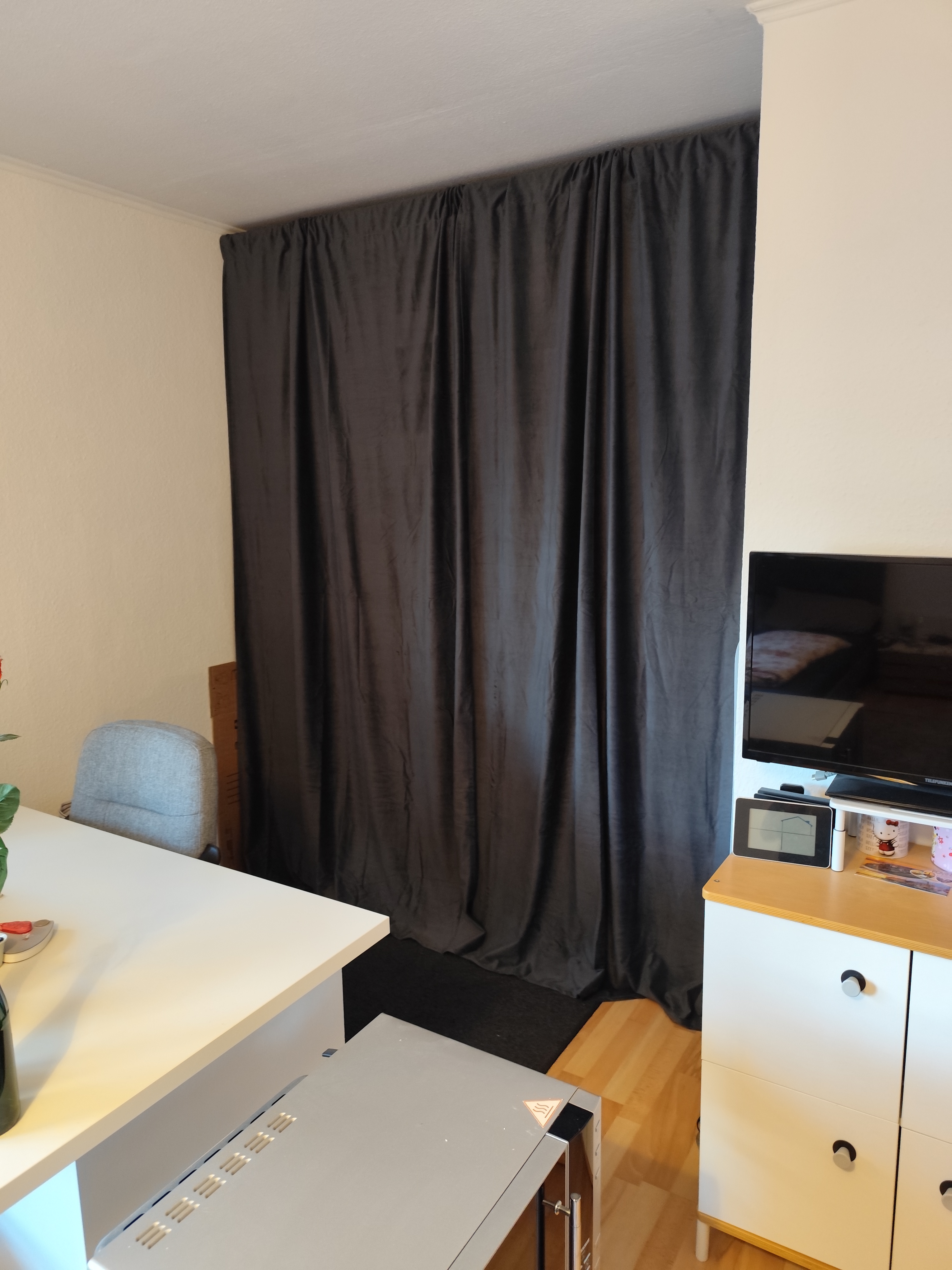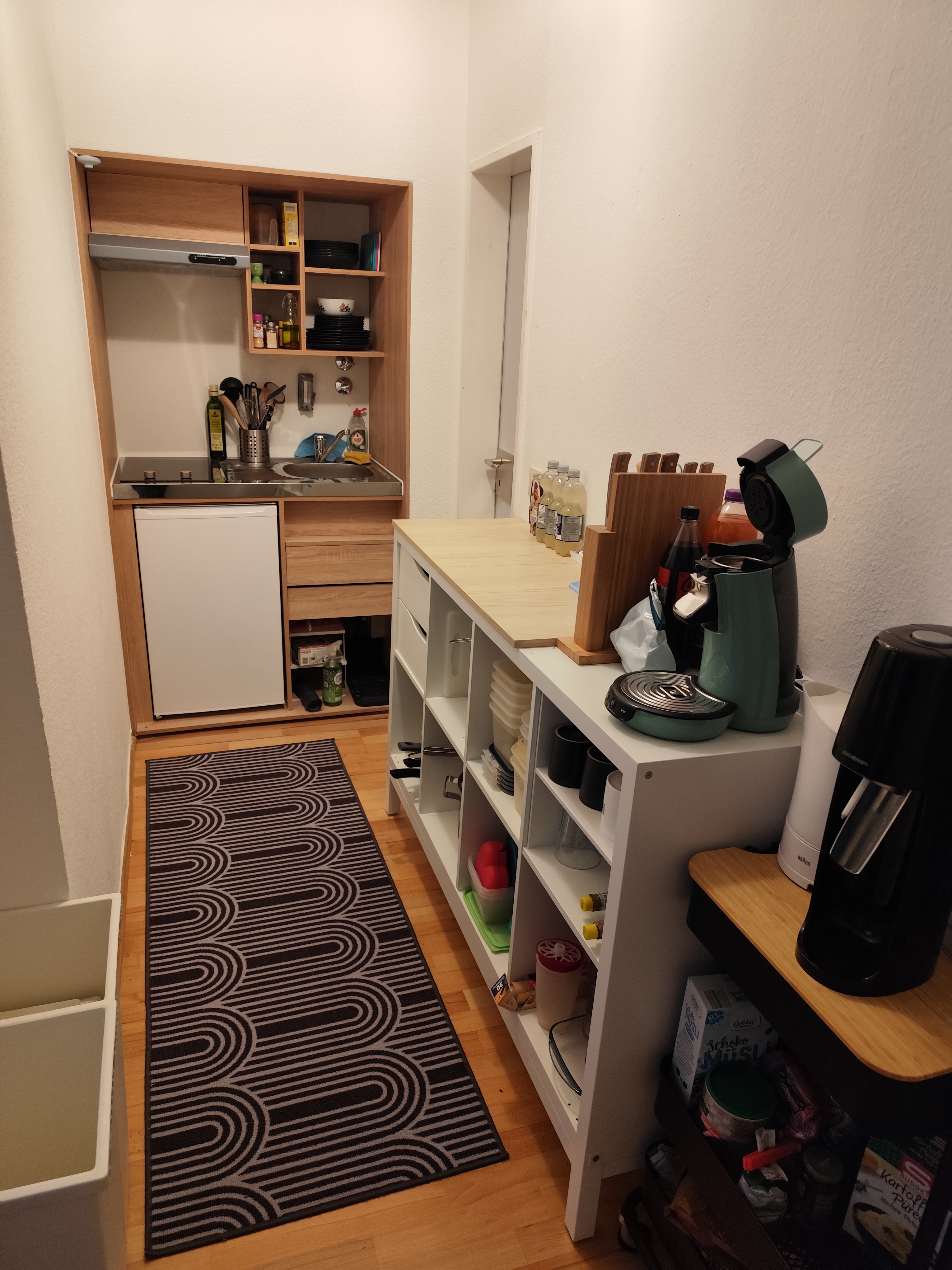 Ein Schrank, Bad Ober und Unterschrank, Duschabtrennung können gegen Abstandszahlung vom Vormieter übernommen werden.