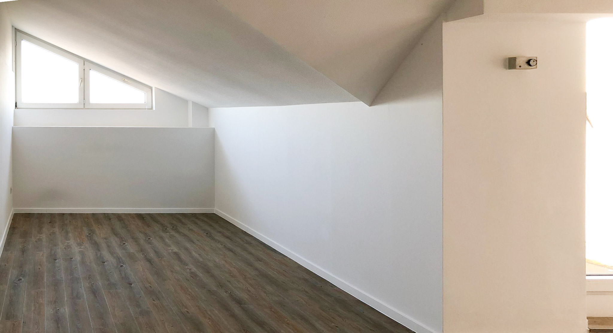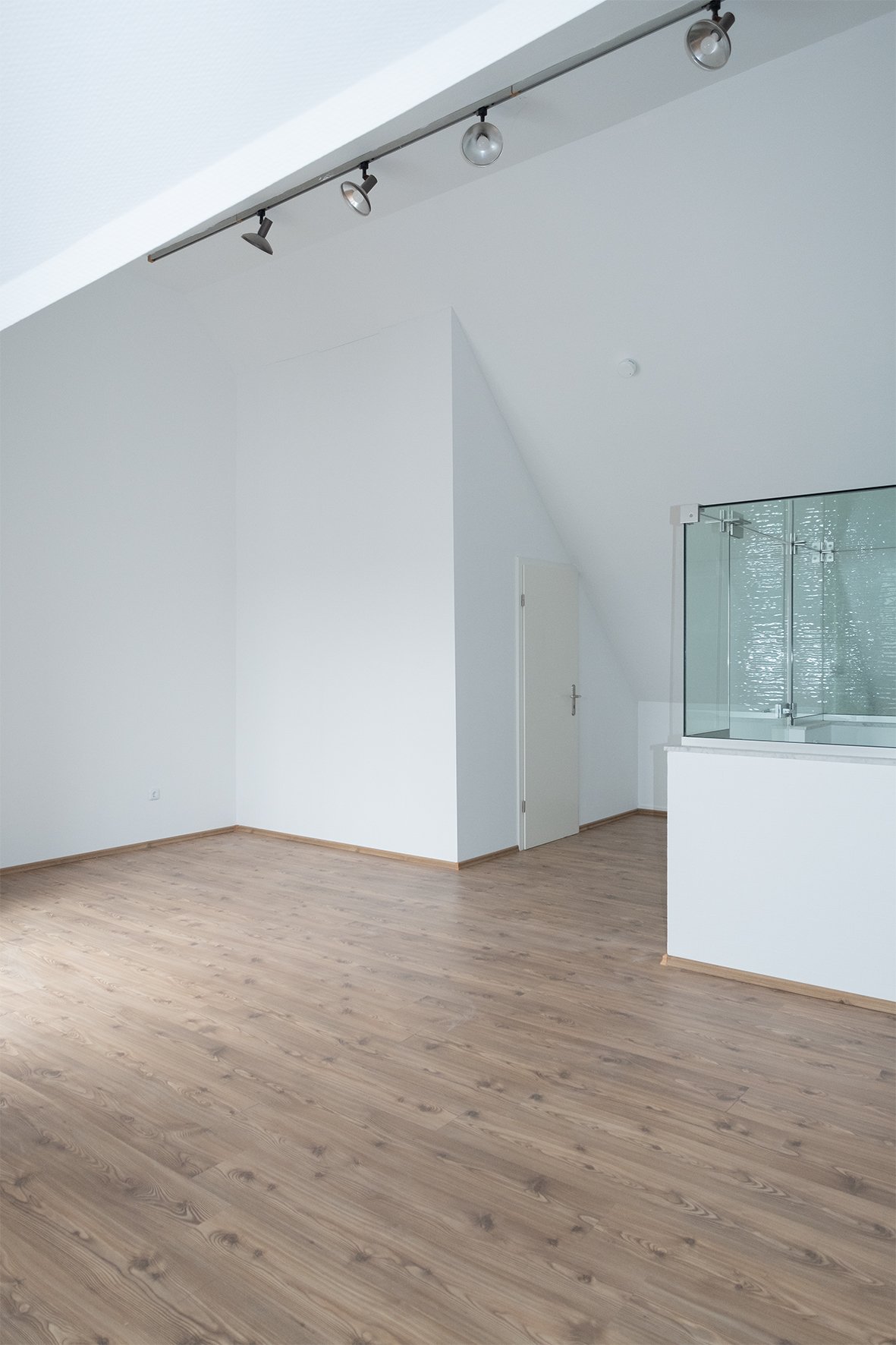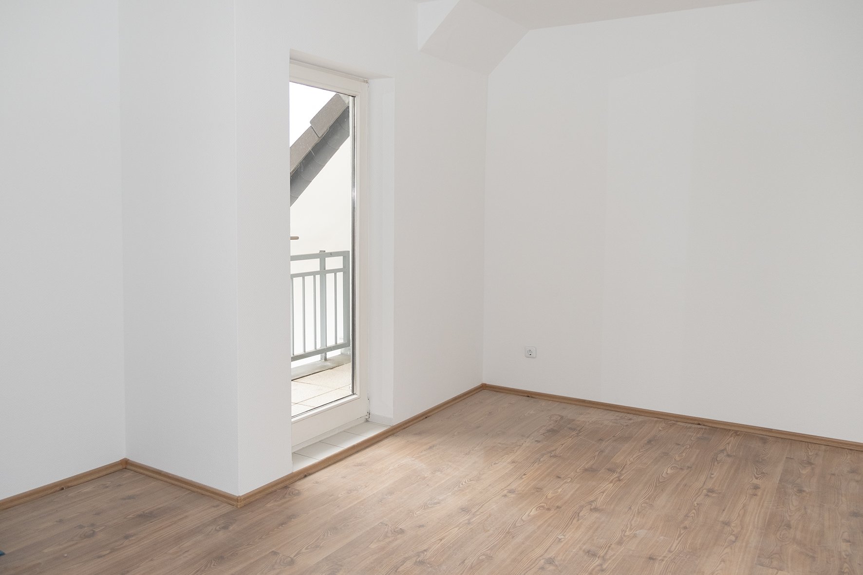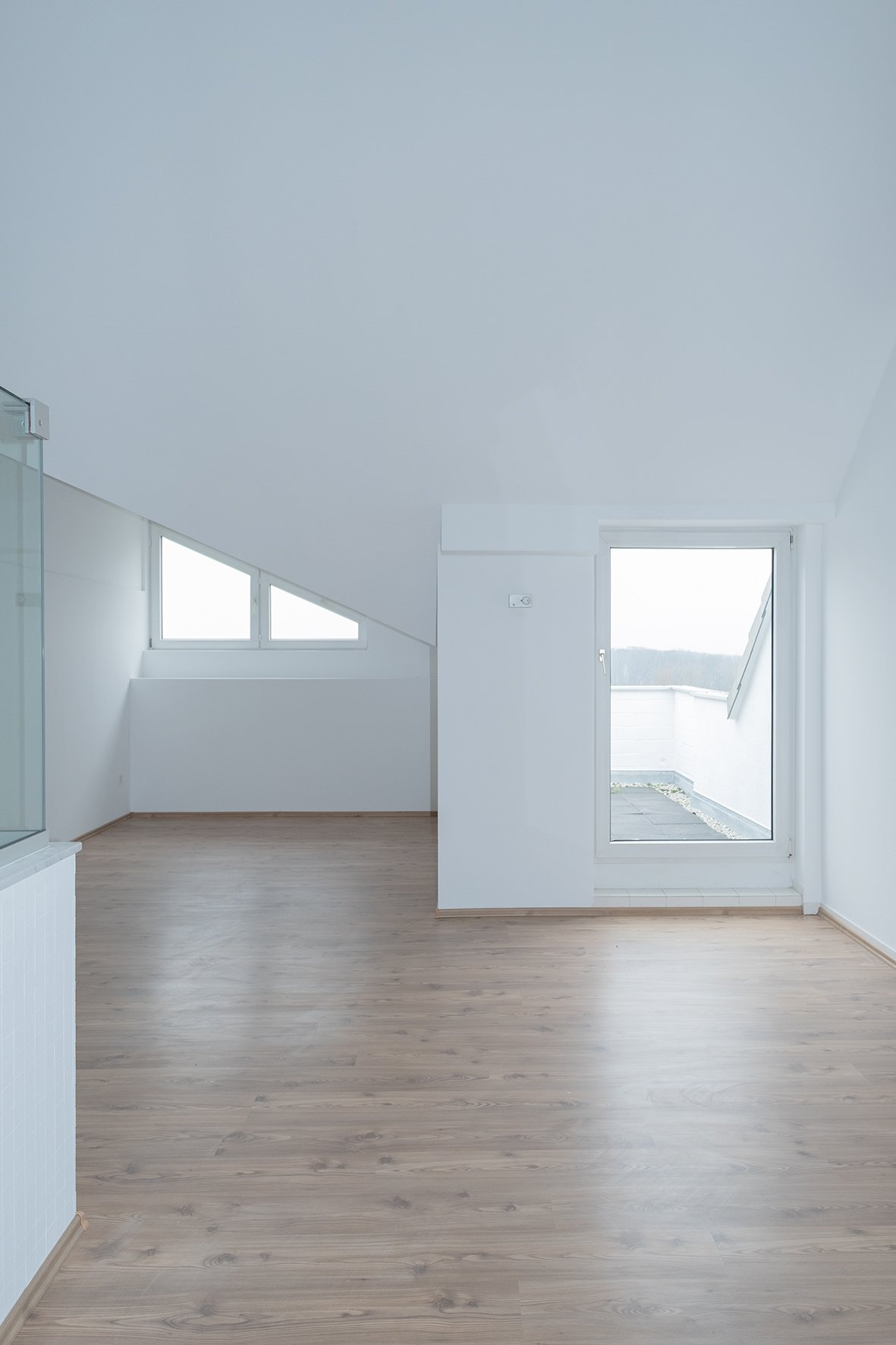Im Dachgeschoss befindet sich ein weiteres Zimmer mit angrenzendem Balkon und Tageslicht-Duschbad.