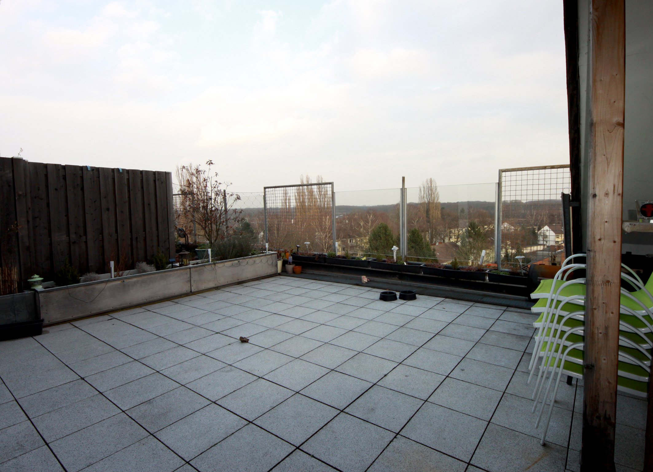 Von der sonnigen Dachterrasse genießen Sie den wunderschönen Blick ins Grüne und auf den Kölner Dom.