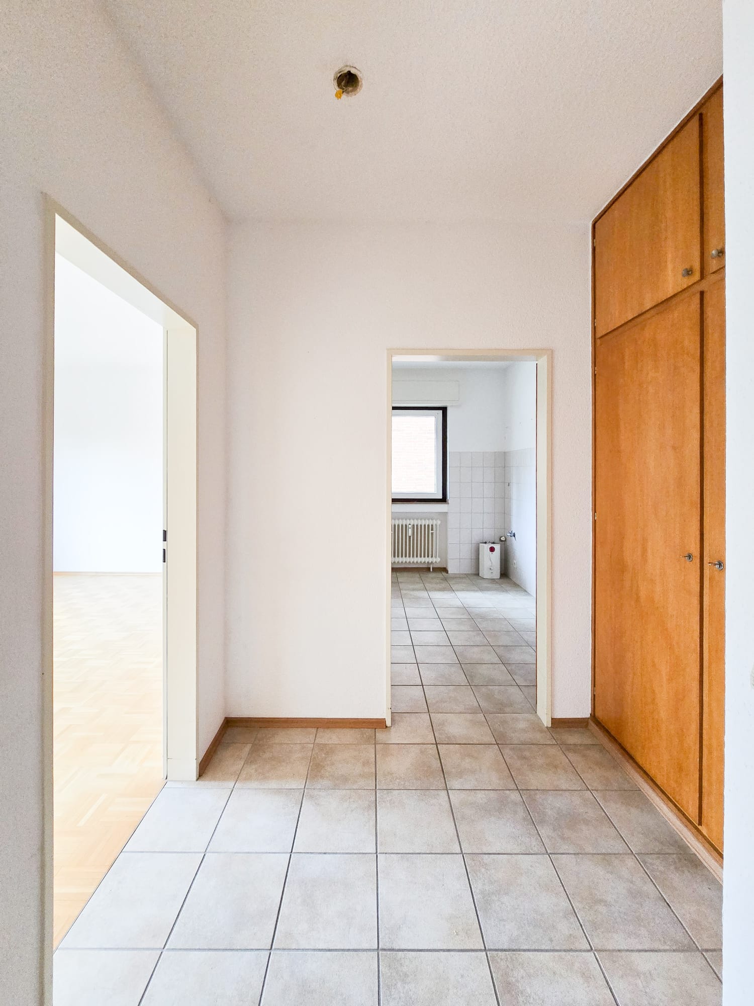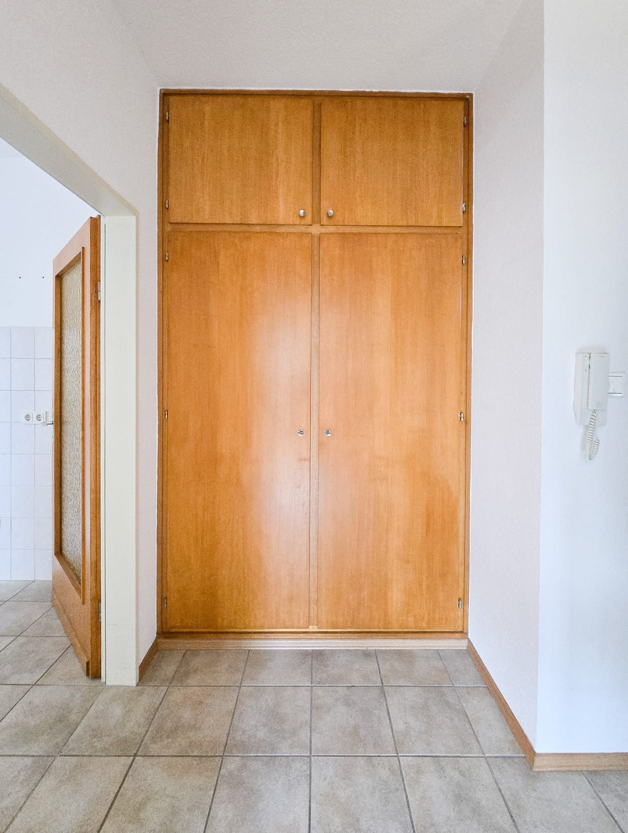 Alle Zimmer sowie das Tageslicht-Wannenbad und die Küche sind von der Diele aus erreichbar. Die Diele bietet in einem praktischen Einbauschrank zusätzlichen Stauraum.