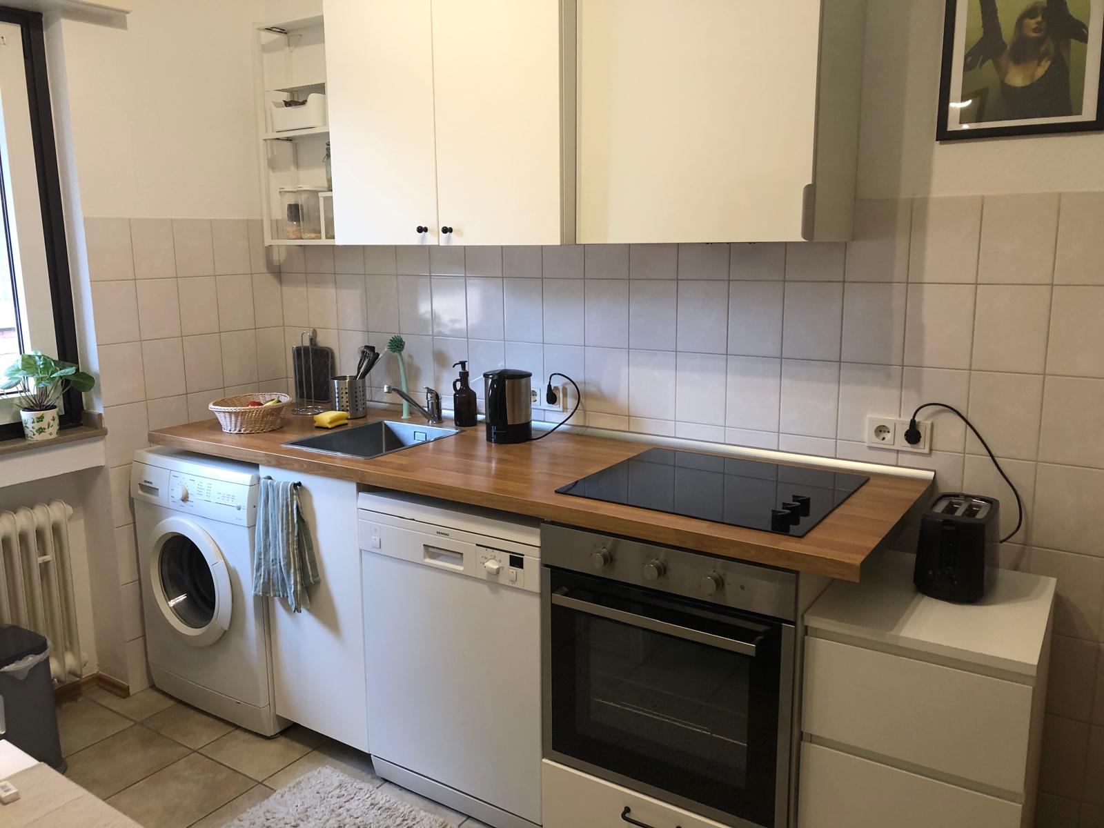Die Einbauküche kann von der Vormieterin gegen eine Abschlagszahlung in Höhe von ca. 550,- € (inkl. Elektrogeräte) übernommen werden.